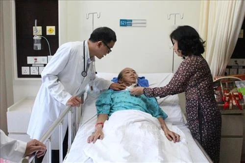 | Các bác sỹ Bệnh viện Quốc tế City Thành phố Hồ Chí Minh thăm khám cho bệnh nhân Oum Sokunm, 48 tuổi, quốc tịch Campuchia. Ảnh: TTXVN phát |