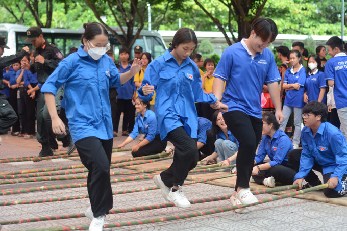 Thanh niên tham gia trò chơi tại Ngày hội. Ảnh: Văn Dũng-TTXVN