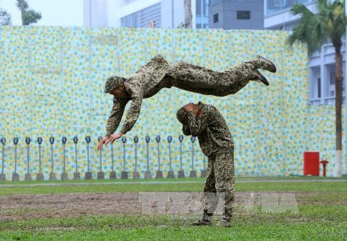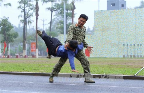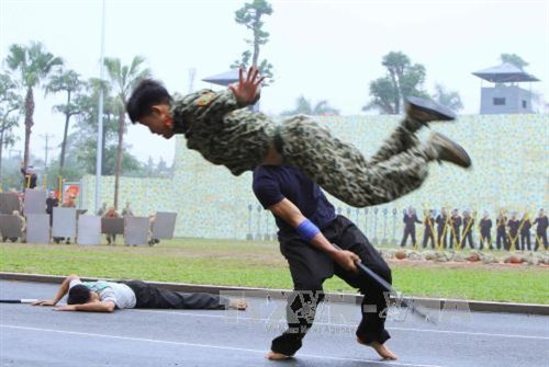 Các chiến sỹ Đặc công biểu diễn võ thuật tại buổi lễ. |