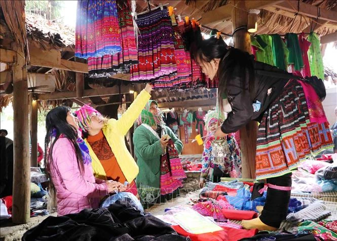 Chợ phiên Sin Suối Hồ là nét văn hóa độc đáo của đồng bào dân tộc Mông. Ảnh: Nguyễn Oanh-TTXVN