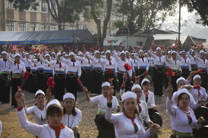 Trình diễn chiêng Mường trong Lễ hội Khai hạ dân tộc Mường Hòa Bình năm 2023. Ảnh: Trọng Đạt - TTXVN