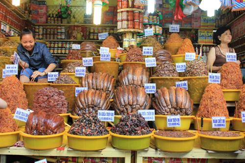 Đến Châu Đốc, bạn rất dễ bị mê hoặc bởi những trái me Thái chín ngọt lịm thơm lừng bày bán khắp nơi. Thỉnh thoảng bạn cũng sẽ bắt gặp những sạp hàng bán mây gai, một loại quả đặc trưng mà ở Việt Nam, chỉ An Giang mới có.