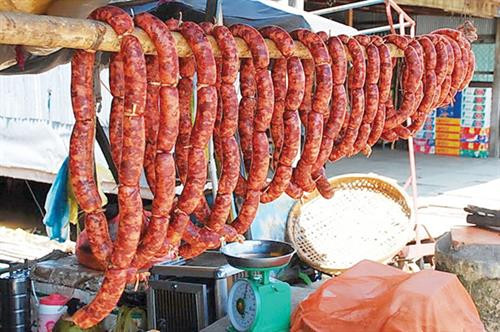 Khác lạp xưởng lợn, lạp xưởng bò sau khi làm xong chỉ cần phơi cho khô là có thể đem chiên hoặc nướng. Hấp dẫn nhất là lạp xưởng nướng trên bếp than hồng. Khi nướng chín xong cắt ra thành viên có màu đỏ hồng, hương bay thơm phức không còn mùi mỡ bò.