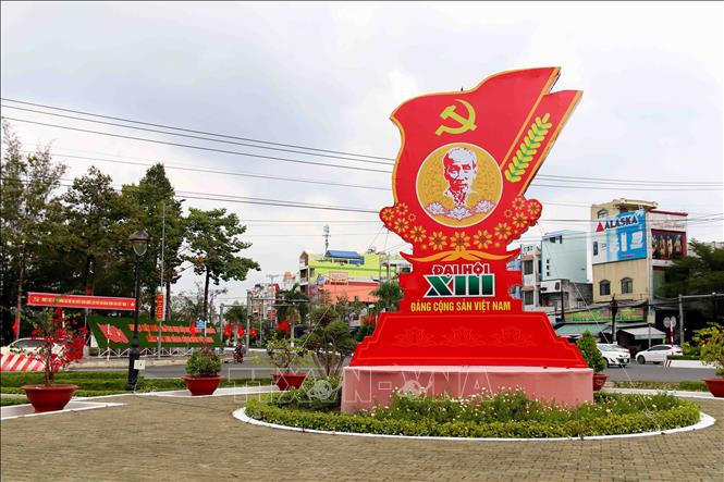 Đường phố Cà Mau rực rỡ cờ hoa, biểu ngữ tuyên truyền chào mừng Đại hội đại biểu toàn quốc lần thứ XIII của Đảng. Ảnh: Kim Há-TTXVN