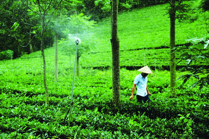 Hệ thống tưới chè van xoay tự động tại hộ gia đình anh Nguyễn Văn Hợp, xã Mỹ Yên, huyện Đại Từ (Thái Nguyên). Ảnh: An Thành Đạt - DTMN