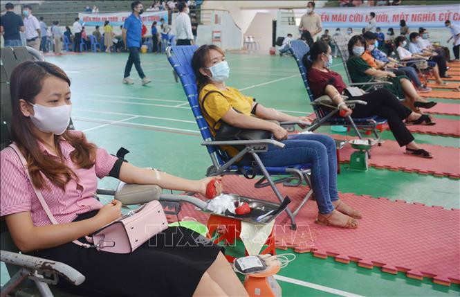 Cán bộ, công nhân viên chức, người lao động, nhân dân hăng hái hiến máu, chủ động tuân thủ quy định về phòng, chống dịch. Ảnh: Hoài Thu – TTXVN.