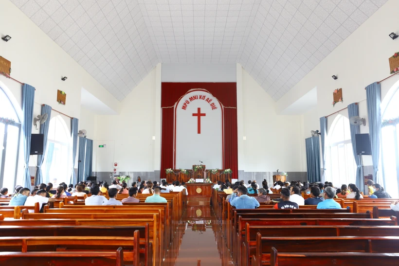Ông Yhin Krông, người uy tín xã Ea Huê, tín đồ Chi hội Tin lành Cư Huê chia sẻ: “Bà con hiện rất tin tưởng vào Đảng và Nhà nước, cùng bảo nhau không uống rượu, không làm điều xấu, không vi phạm pháp luật, tích cực làm kinh tế”.