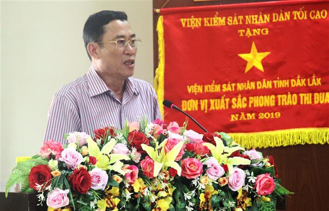 Phó Chủ tịch UBND tỉnh Đắk Lắk Võ Văn Cảnh phát biểu tại hội nghị. Ảnh: Hoài Thu - TTXVN