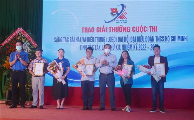 Trao giải cuộc thi “Sáng tác biểu trưng và bài hát tuyên truyền Đại hội Đoàn TNCS Hồ Chí Minh tỉnh Đắk Lắk lần thứ XII, nhiệm kỳ 2022-2027”. Ảnh: Hoài Thu – TTXVN
