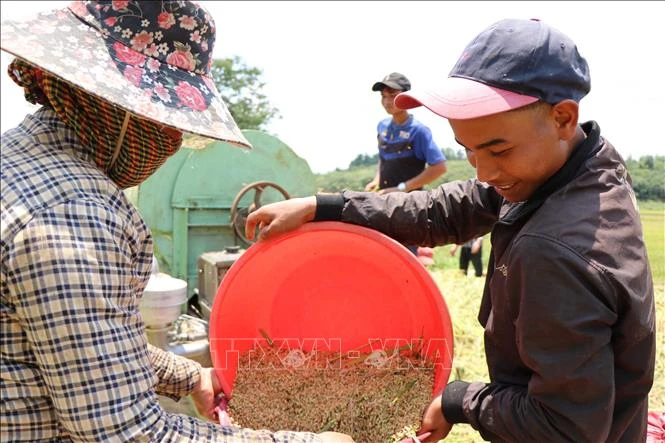 Niềm vui được mùa của đồng bào M’Nông tại bon Pi Nao, xã Nhân Đạo, huyện Đắk R’Lấp, tỉnh Đắk Nông. Ảnh: Hưng Thịnh - TTXVN