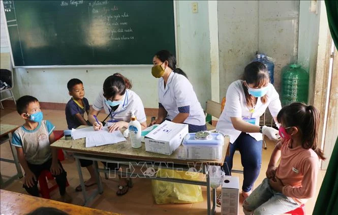 Khám sàng lọc và tiêm vắc xin phòng bệnh bạch hầu cho trẻ. Ảnh: Tuấn Anh – TTXVN