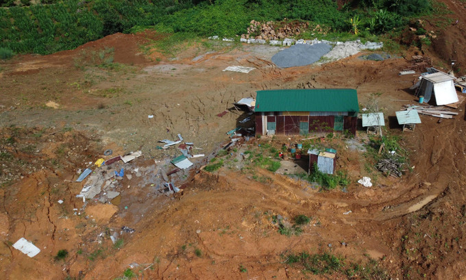 Sụt lún tại khu vực lán trại của đơn vị thi công đường Đạo Nghĩa – Quảng Khê (giai đoạn 2). Ảnh: TTXVN