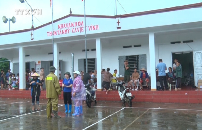 Được xem là nơi tiềm ẩn nguy cơ sạt lở cao, xã Việt Vinh đã di dời hơn 140 hộ dân với gần 700 nhân khẩu đến trú tránh tại nhà văn hóa thôn Tân Mỹ, xã Việt Vinh. Tại đây, trước mắt, người dân được sắp xếp nơi ở và nhu yếu phẩm cần thiết hàng ngày.