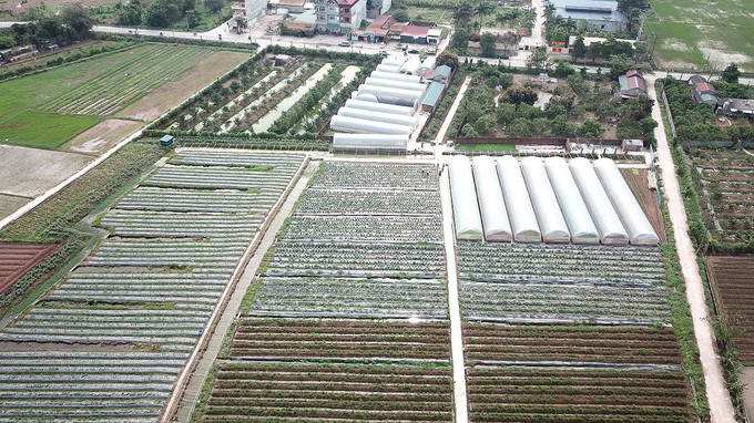 Trang trại trồng hoa Đan Hoài ở thị trấn Phùng, huyện Đan Phượng được quy hoạch sản xuất theo tiêu chí nông thôn mới.