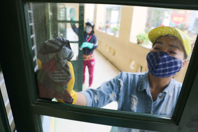 Giáo viên Trường tiểu học Đan Phượng tổng vệ sinh toàn diện cơ sở vật chất trường lớp.