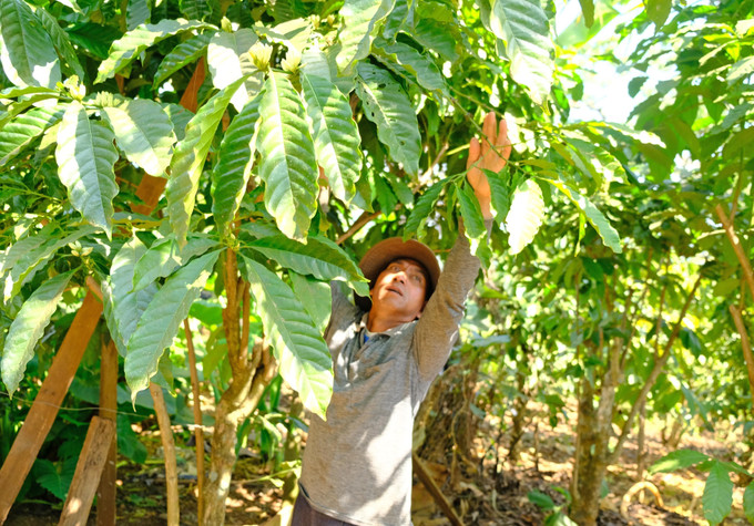 Mấy năm trước, khi cà phê rớt giá, Chi bộ và các đảng viên sát cánh cùng người dân trong buôn làng triển khai chuyển đổi, ghép cải tạo giống cà phê năng suất cao cho bà con để cải thiện thu nhập. “Cùng với việc cải tạo giống cà phê để nâng cao năng suất, chúng tôi cũng hướng dẫn bà con chuyển đổi cơ cấu cây trồng như xen xanh cây mắc ca, cây sầu riêng, trồng lagim (các loại rau ngắn ngày trồng trong nhà kính) để có thêm nguồn thu nhập khi cà phê rớt giá”, ông K’Đức cho biết.