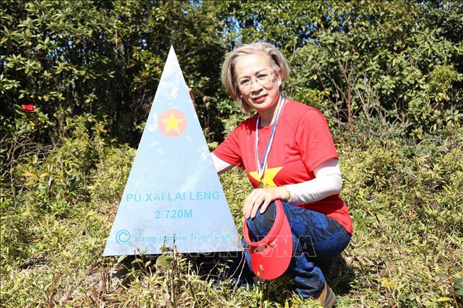 Du khách check in "Chinh phục đỉnh Puxailaileng" - nơi có độ cao hơn 2.700m so với mặt đất. Ảnh: TTXVN