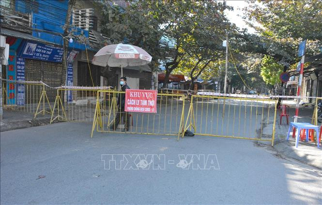 Đường vào chợ Năng Tĩnh, phường Năng Tĩnh bị phong toả do có tiểu thương trong chợ mắc COVID-19. Ảnh: Công Luật - TTXVN