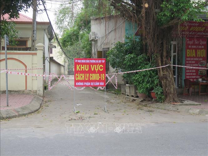 Khu dân cư ở phường Hà Huy Tập, thành phố Vinh, Nghệ An bị phong tỏa do phát hiện trường hợp dương tính với SARS-CoV-2 có liên quan. Ảnh: TTXVN