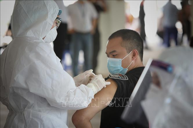 Tiêm vaccine phòng COVID-19 cho công nhân trong khu công nghiệp. Ảnh: Danh Lam - TTXVN