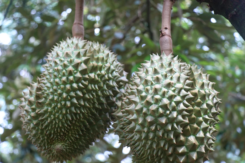 Tỉnh Đắk Lắk hiện có hơn 12.000 ha sầu riêng, diện tích cho thu hoạch 5.300 ha, sản lượng khoảng 103.000 tấn/năm. Ảnh: Tuấn Anh - TTXVN
