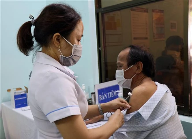 Tiêm vắc xin phòng COVID-19 cho đối tượng là Nhà báo. Ảnh: Trần Tĩnh - TTXVN