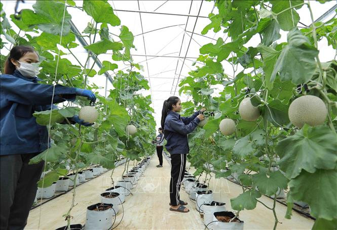 HTX Tinh Hoa Farm ở phường Tân Lập, thành phố Buôn Ma Thuột có hơn 2 ha trồng dưa lưới và sản xuất cây giống rau các loại. Ảnh: Vũ Sinh - TTXVN