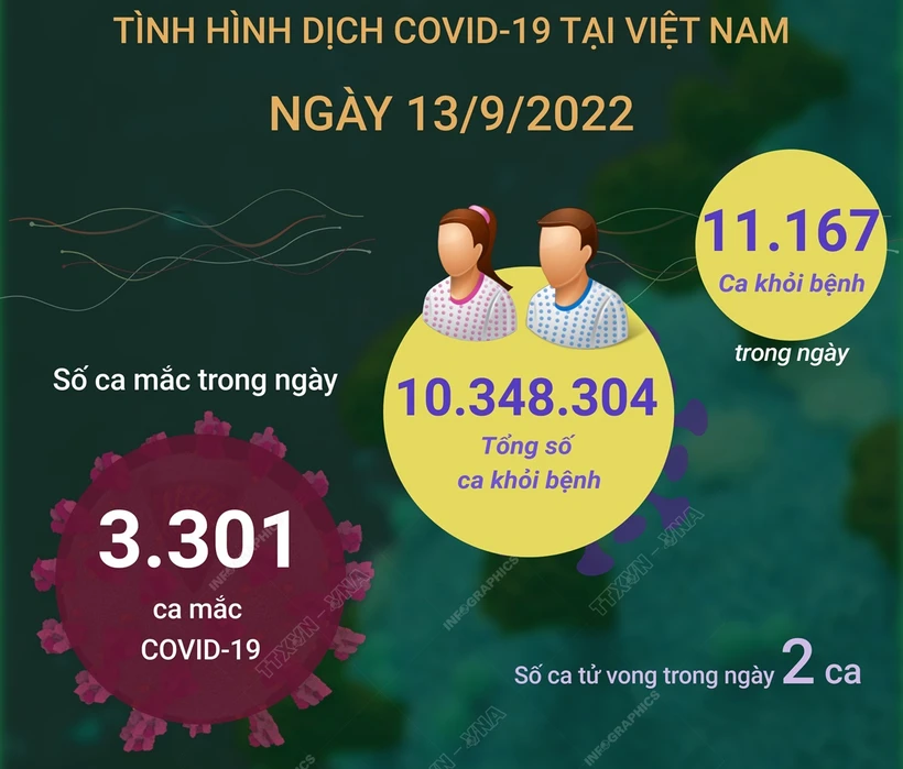 Chiều 13/9, Bộ Y tế cho biết, trong ngày cả nước ghi nhận 3.301 ca mắc mới, số khỏi bệnh là 11.167 ca, 190 ca đang thở ô xy.