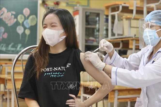 Nhân viên y tế tiêm vaccine phòng COVID-19 cho người dân phường Hạ Đình (quận Thanh Xuân). Ảnh: Minh Quyết - TTXVN