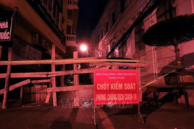 Toàn bộ tuyến phố Trương Công Định, phường Yết Kiêu, quận Hà Đông bị phong tỏa. Ảnh: Tuấn Anh - TTXVN