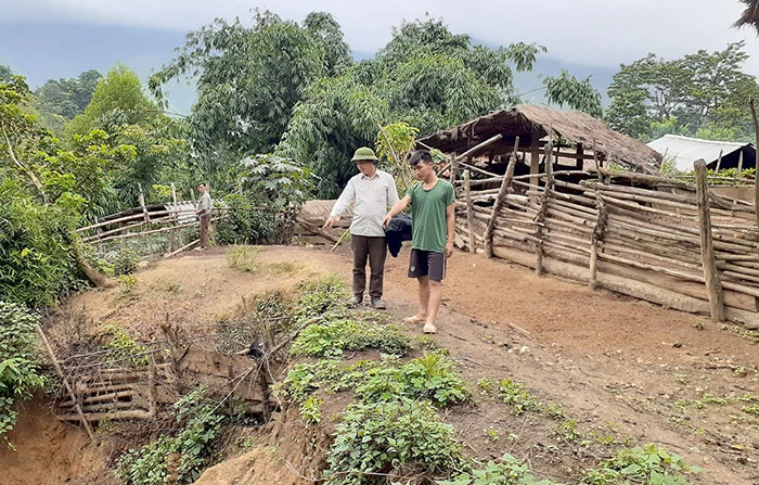 Khu vực sạt lở đất tại bản Mường Tỉnh A ngay sát nhà dân sinh sống. Ảnh: baodienbienphu.info.vn