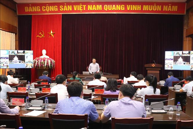 Quang cảnh buổi họp Họp Ban Chỉ đạo phòng, chống dịch COVID-19 tỉnh Điện Biên. Ảnh: Xuân Tiến - TTXVN