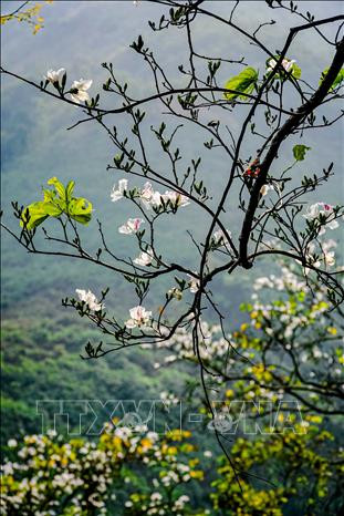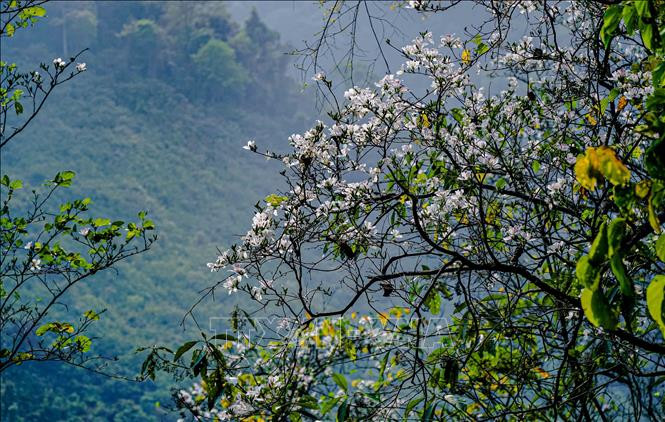 Hoa Ban bắt đầu nở vào khoảng giữa tháng 2 dương lịch hàng năm và bung nở trắng xóa vào tháng 3. Ảnh: Xuân Tư – TTXVN