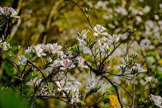 Một nhành ban vẫn còn nhiều nụ hoa chưa bung nở. Ảnh: Xuân Tư – TTXVN