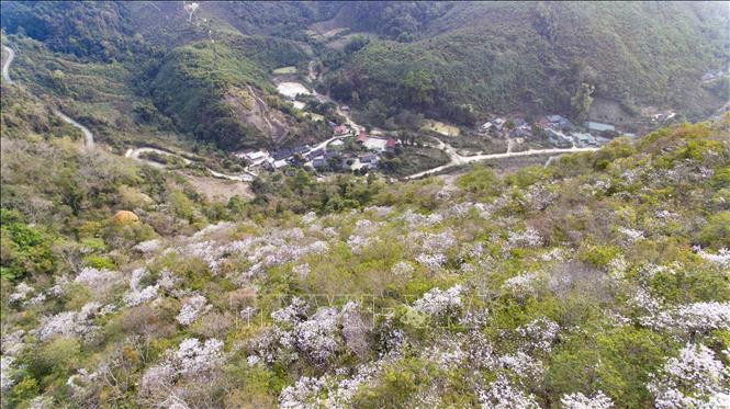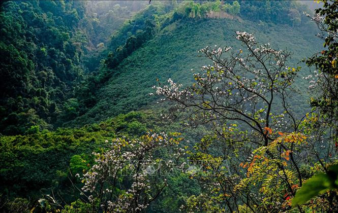 Hoa Ban đã bắt đầu bung nở trắng muốt trên khắp núi rừng. Ảnh: Xuân Tư – TTXVN