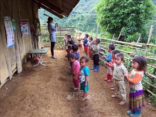 Giờ học thể dục ở điểm Trường Mầm non Suối Ngang, xã Quang Huy, huyện Phù Yên (Sơn La). Ảnh: Hữu Quyết – TTXVN