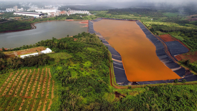 Hai hồ bùn đỏ (bên trái là khoang số 1, bên phải là khoang số 2) của Nhà máy alumin Nhân Cơ. Ảnh: Hưng Thịnh – TTXVN
