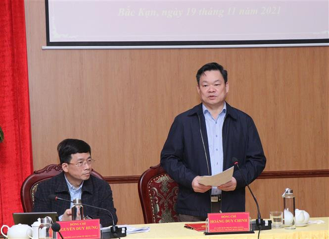 Phó Trưởng Ban Kinh tế Trung ương Nguyễn Duy Hưng phát biểu tại buổi làm việc với Thường trực Tỉnh ủy, Ủy ban Nhân dân tỉnh Bắc Kạn. Ảnh: Vũ Hoàng Giang - TTXVN