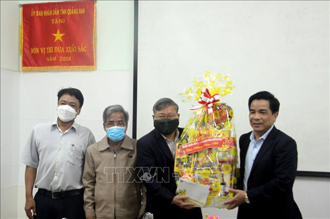 Lê Văn Dũng - Phó Bí thư Thường trực Tỉnh ủy, Trưởng Đoàn đại biểu Quốc hội tỉnh Quảng Nam tặng quà tết cho Trung tâm kiểm soát bệnh tật tỉnh Quảng Nam. Ảnh: Phước Tuệ - TTXVN