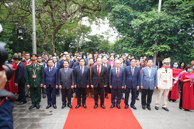 Phó Thủ tướng Thường trực Trương Hòa Bình dẫn đầu Đoàn đại biểu dự Đại hội đại biểu toàn quốc các dân tộc thiểu số Việt Nam lần thứ II dâng hương tưởng nhớ, tri ân công đức các Vua Hùng tại điện Kính Thiên. Ảnh: Hoàng Hà