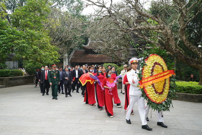 Các đại biểu dâng hương tưởng nhớ, tri ân công đức các Vua Hùng tại Đền Thượng. Ảnh: Hoàng Hà