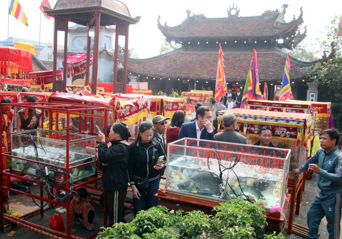 Từ đầu tháng Chạp, nhân dân đã gấp rút chuẩn bị các công việc như làm bánh chưng, bánh dày, làm giò… Điểm nhấn của lễ hội là tục tế cá trắm sống. Cá để dâng lên Đức thánh vào ngày chính kỵ mùng 10 tháng Chạp là cá trắm đen. Những con cá đủ tiêu chuẩn dâng cúng được người dân trong vùng dành nhiều thời gian tìm kiếm ở các địa phương, có những năm ghi nhận cá dâng tế lễ có con to nặng gần 20kg.