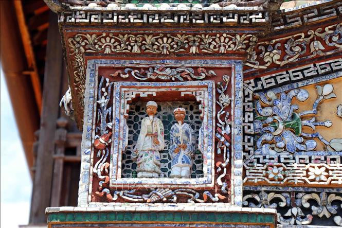 Nghệ thuật trang trí bằng sành sứ tinh xảo ở công trình Thái Bình Lâu. Ảnh: Đỗ Trưởng - TTXVN