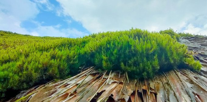 Những mảng rêu được hình thành, phát triển nhờ sự đặc thù của thời tiết ẩm, mát mẻ quanh năm. Ảnh: Nam Thái – TTXVN