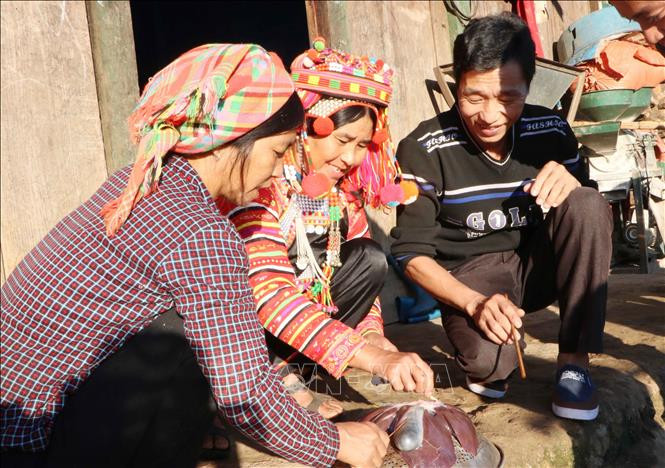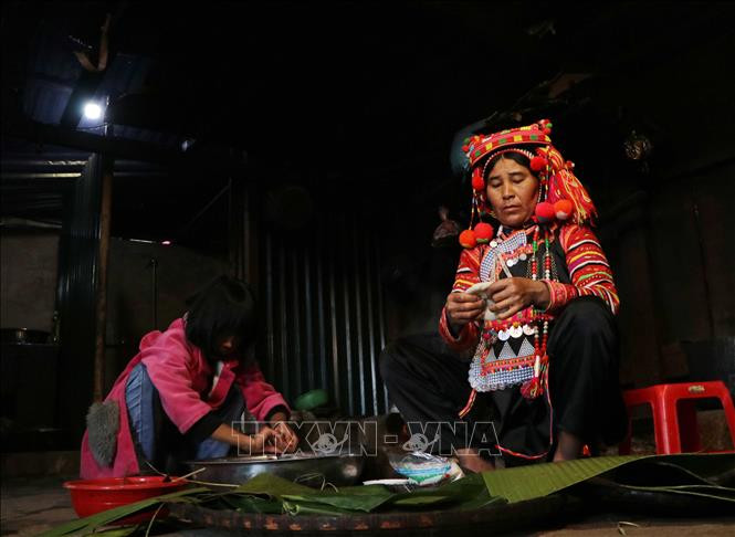 Đồng bào Hà Nhì quây quần chuẩn bị Tết. Ảnh: Nguyễn Oanh - TTXVN