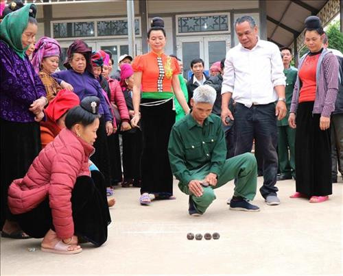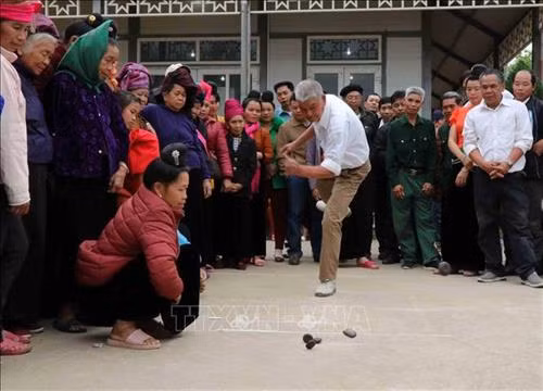 | Đây là một trong những trò chơi dân gian khá phổ biến và mang đậm bản sắc văn hóa của cộng đồng dân tộc Thái. Ảnh: Nguyễn Cường - TTXVN. |