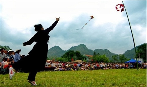 Hội còn diễn ra rất hấp dẫn, những quả còn đủ màu sắc bay gần, bay xa quanh phông còn nhìn vô cùng đẹp mắt. Mọi người đứng xem thì hát cổ vũ bằng những lời ca trong sáng: