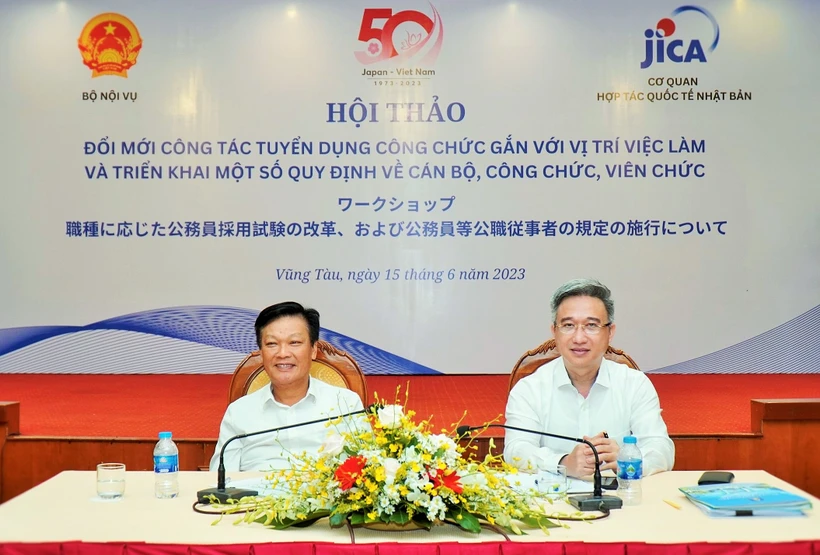 Ngày 15/6, tại tỉnh Bà Rịa - Vũng Tàu, Bộ Nội vụ phối hợp với Cơ quan hợp tác quốc tế Nhật Bản (JICA) và Cơ quan nhân sự Quốc gia Nhật Bản (NPA) tổ chức Hội thảo đổi mới công tác tuyển dụng công chức gắn với vị trí việc làm và triển khai một số quy định về cán bộ, công chức, viên chức.