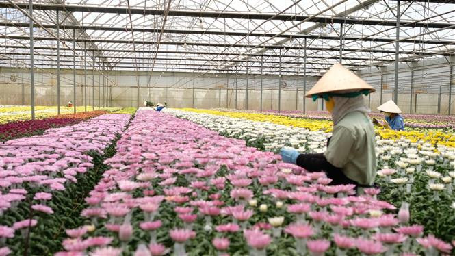 Công nhân Công ty TNHH Dalat Hasfarm làm việc tại trang trại ở Đạ Ròn, huyện Đơn Dương (Lâm Đồng). Ảnh: Nguyễn Dũng – TTXVN