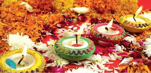 Vào những ngày này, người ta cầu xin vị thần của sự giàu sang và hy vọng cho họ tài lộc dồi dào hơn trong năm mới. Họ đeo những vòng hoa quanh cổ và tay trong những buổi lễ. Mỗi loại hoa tượng trưng cho một màu quan trọng trong tôn giáo. Màu hồng, màu đỏ và màu tím là tượng trưng cho thánh thần của người theo đạo Hindu, còn màu vàng tượng trưng cho Chúa Trời.